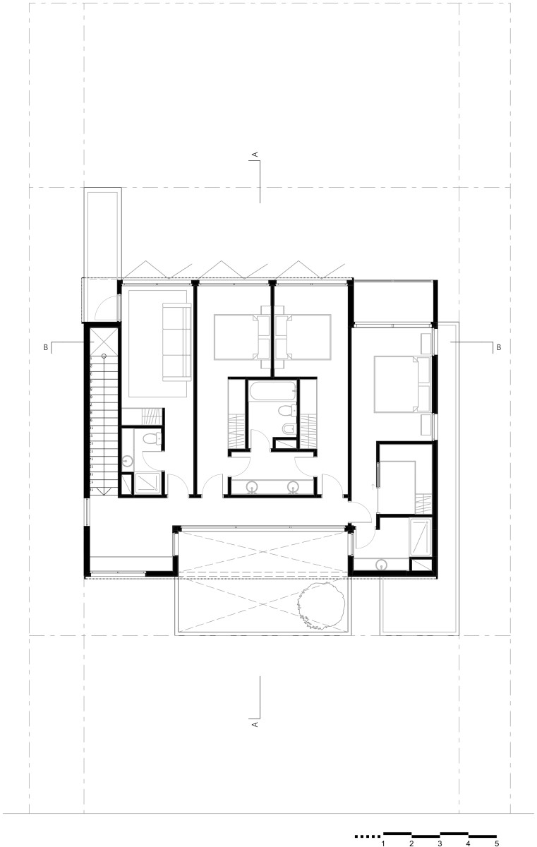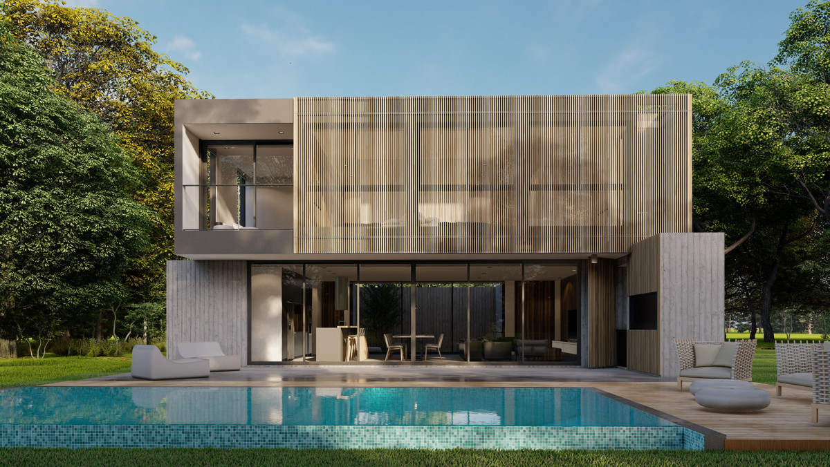 Ubicada en un exclusivo lote con vistas panorámicas a un extenso parque - ex driving- de un Country Club en la zona de Pilar (Buenos Aires, Argentina), la casa 1 forma parte de un gran rejuvenecimiento del country en donde diversas casas fueron asoladas para dar espacio a nuevas y contemporáneas construcciones con vistas únicas. El proyecto abarca 250m2 y cuenta con 4 habitaciones en la planta alta y un espacioso living comedor con cocina integrada en la planta baja. Allí, por un lado, un jardín privado te separa del espacio público de la calle dando lugar a nuevas materialidades y, por otro lado, una moderna pileta se unifica con el solar de la galería. El inmueble cuenta con servicio de dependencia, lavadero, sitio recibidor de office y amplio espacio de guardado. Amplios ventanales ofrecen luz natural a los espacios generando juegos de luces y sombras con la fachada y ofreciendo privacidad a las habitaciones que miran al contrafrente.